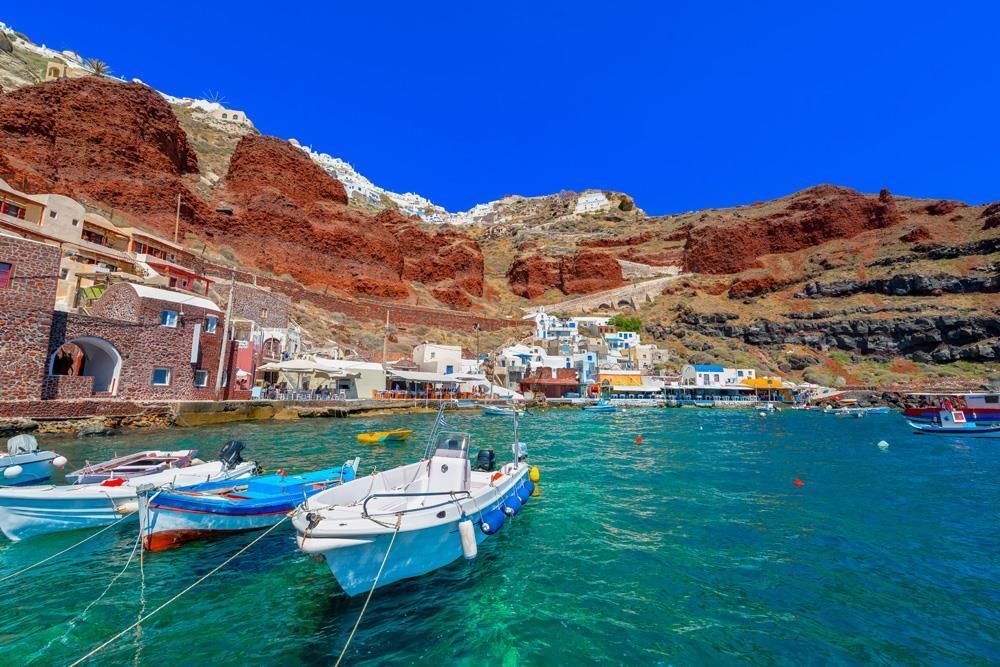 Cousteau looked for the lost city of Atlantis here, in Santorini. Crescent-shaped Santorini (or Thíra), the precious gem of the Aegean, is actually a group of islands consisting of Thíra, Thirassia, Asproníssi, Palea and Nea Kameni in the southernmost part of Cyclades. Venture into Santorini’s seaside treasures and enjoy deep blue waters and beaches with white, red or black sand or volcanic pebbles, spectacular rock formations and impressive lunar landscapes. Santorini, the youngest volcanic land in the Eastern Mediterranean. Experience the once-in-a-lifetime charm of this pearl of the Aegean.
